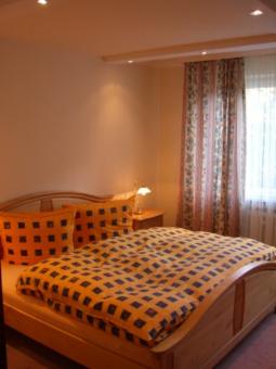 Das gemütliche Schlafzimmer bietet großzügigen Platz für zwei Personen. Auf Wunsch können wir eine Aufbettung für eine dritte Person im Wohnzimmer bereitstellen.
